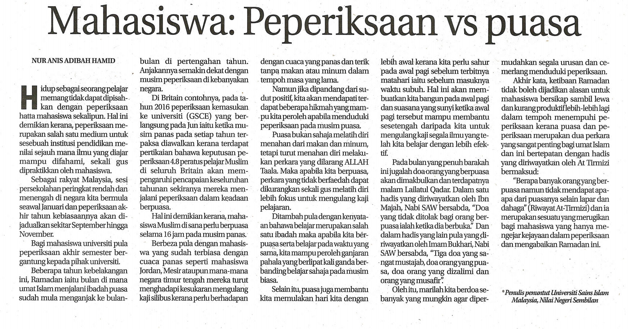 Mahasiswa Peperiksaan Vs Puasa