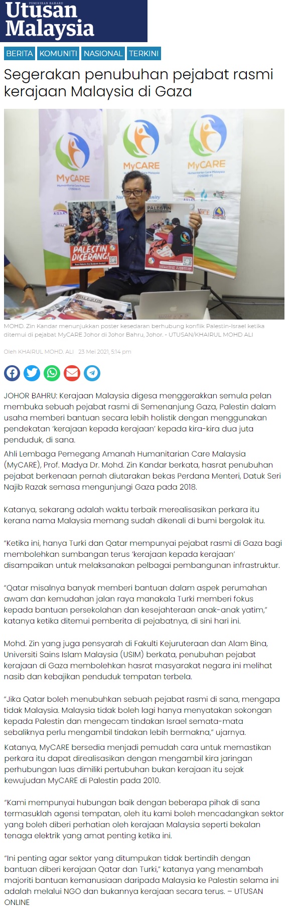 Segerakan Penubuhan Pejabat Rasmi Kerajaan Malaysia Di Gaza