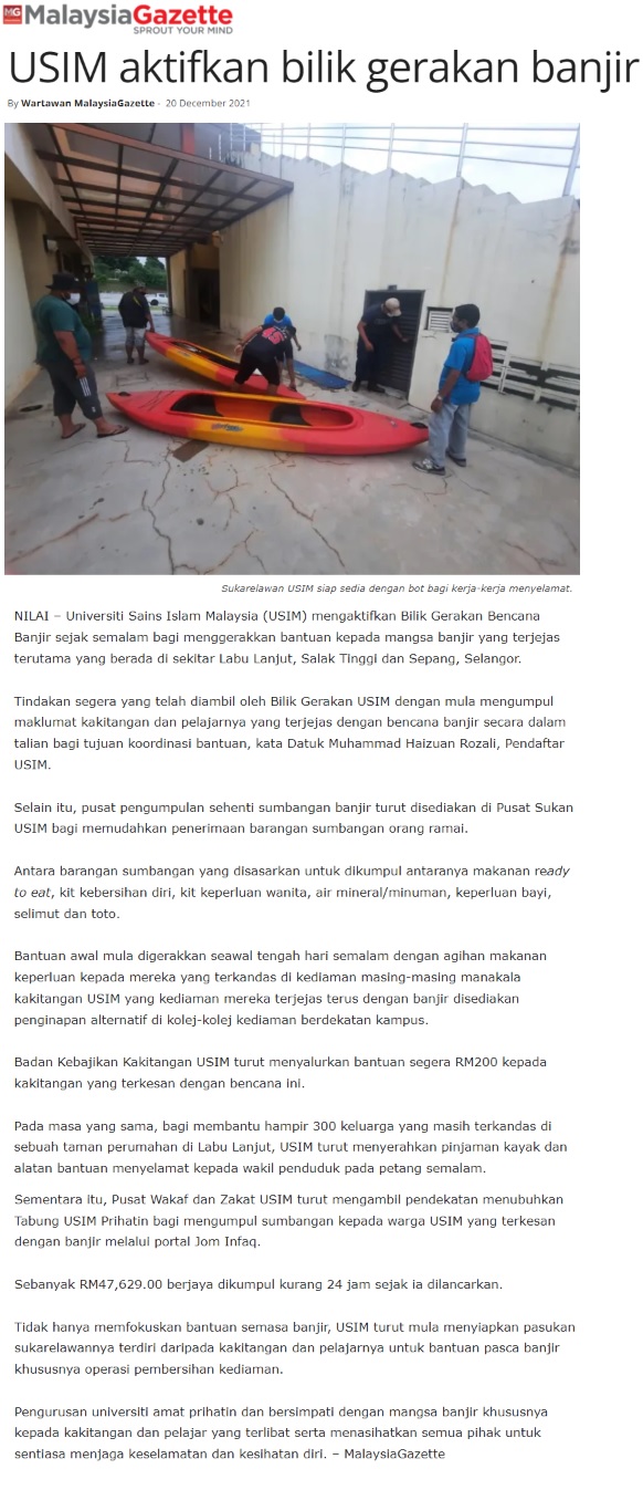 USIM Aktifkan Bilik Gerakan Banjir