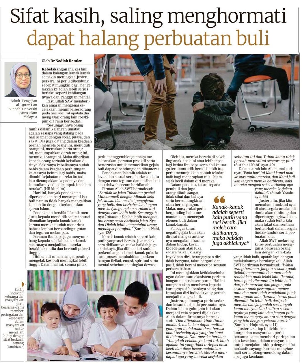 Sifat kasih, saling menghormati dapat halang perbuatan buli
