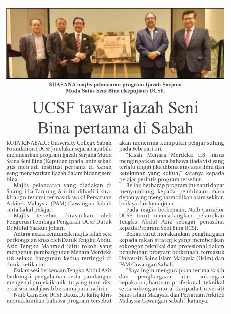 UCSF TAWAR IJAZAH SENI BINA PERTAMA DI SABAH