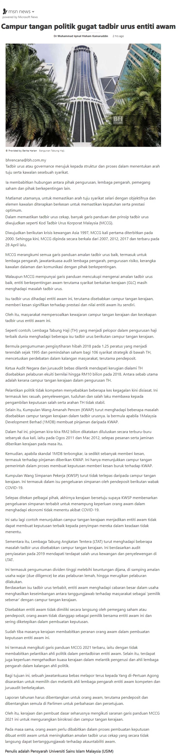 Campur Tangan Politik Gugat Tadbir Urus Entiti Awam