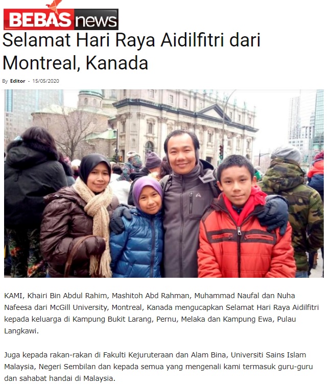 Selamat Hari Raya Aidilfitri Dari Montreal, Kanada