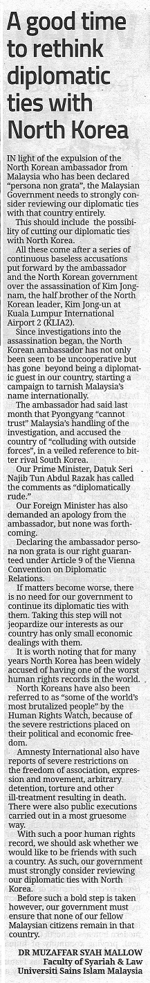 THE STAR - A GOOD TIME TO RETHINK DIPLOMATIC TIES WITH NORTH KOREA, 6 MAC 2017, MS 32.jpg