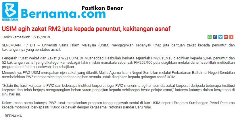 USIM Agih Zakat RM2 Juta Kepada Penuntut,Kakitangan Asnaf