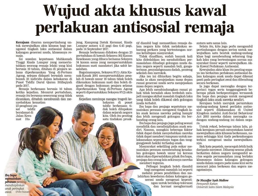 Wujud Akta Khusus Kawal Perlakuan Antisosial Remaja