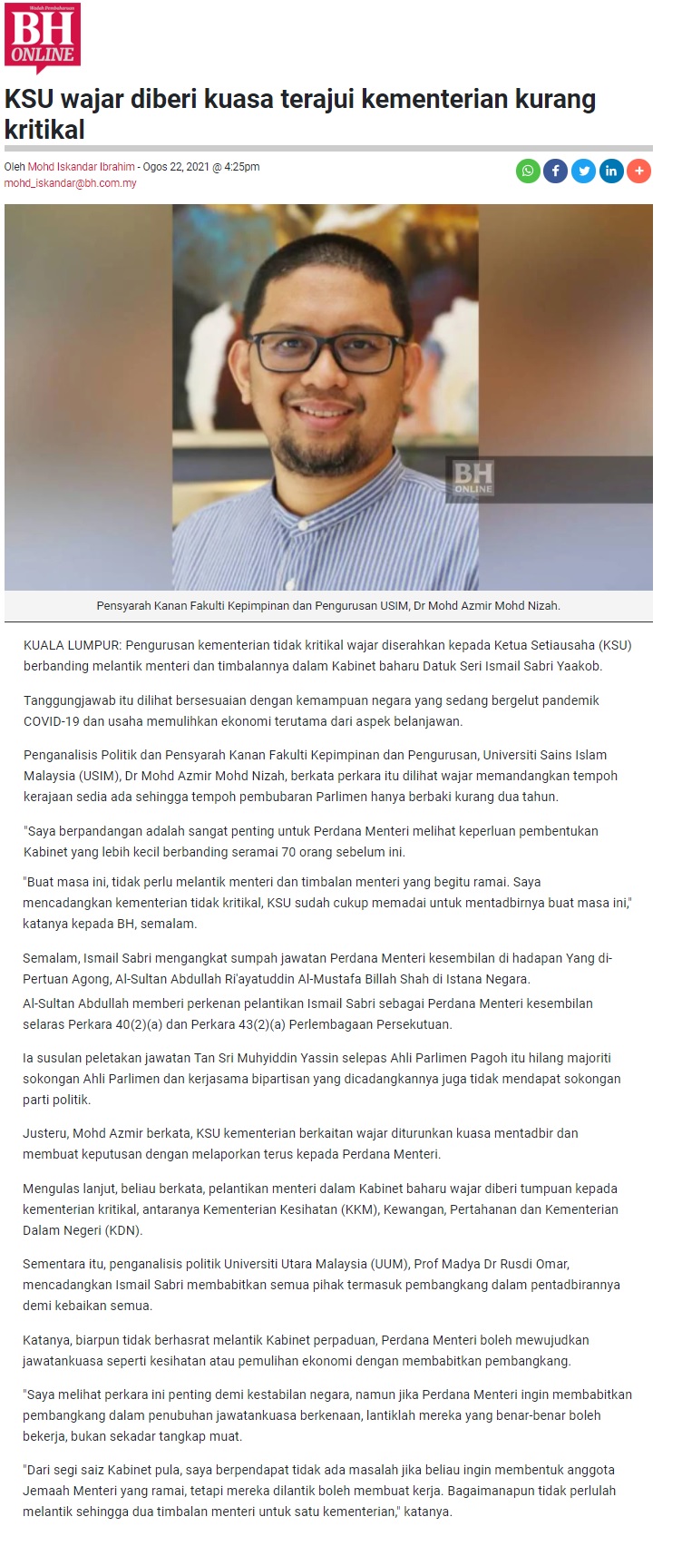 KSU Wajar Diberi Kuasa Terajui Kementerian Kurang Kritikal