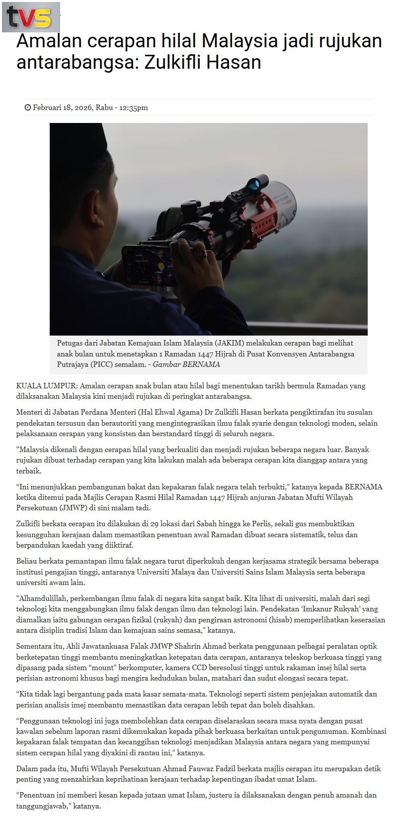AMALAN CERAPAN HILAL MALAYSIA JADI RUJUKAN ANTARABANGSA