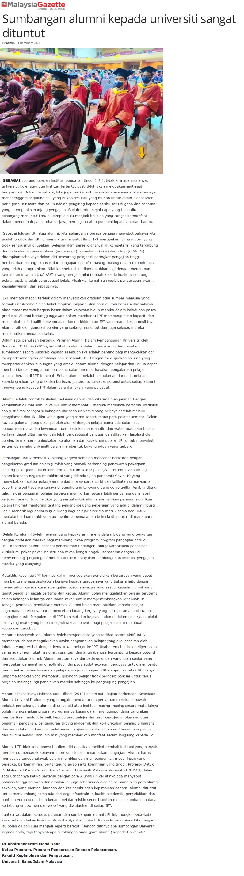 Sumbangan Alumni Kepada Universiti Sangat Dituntut