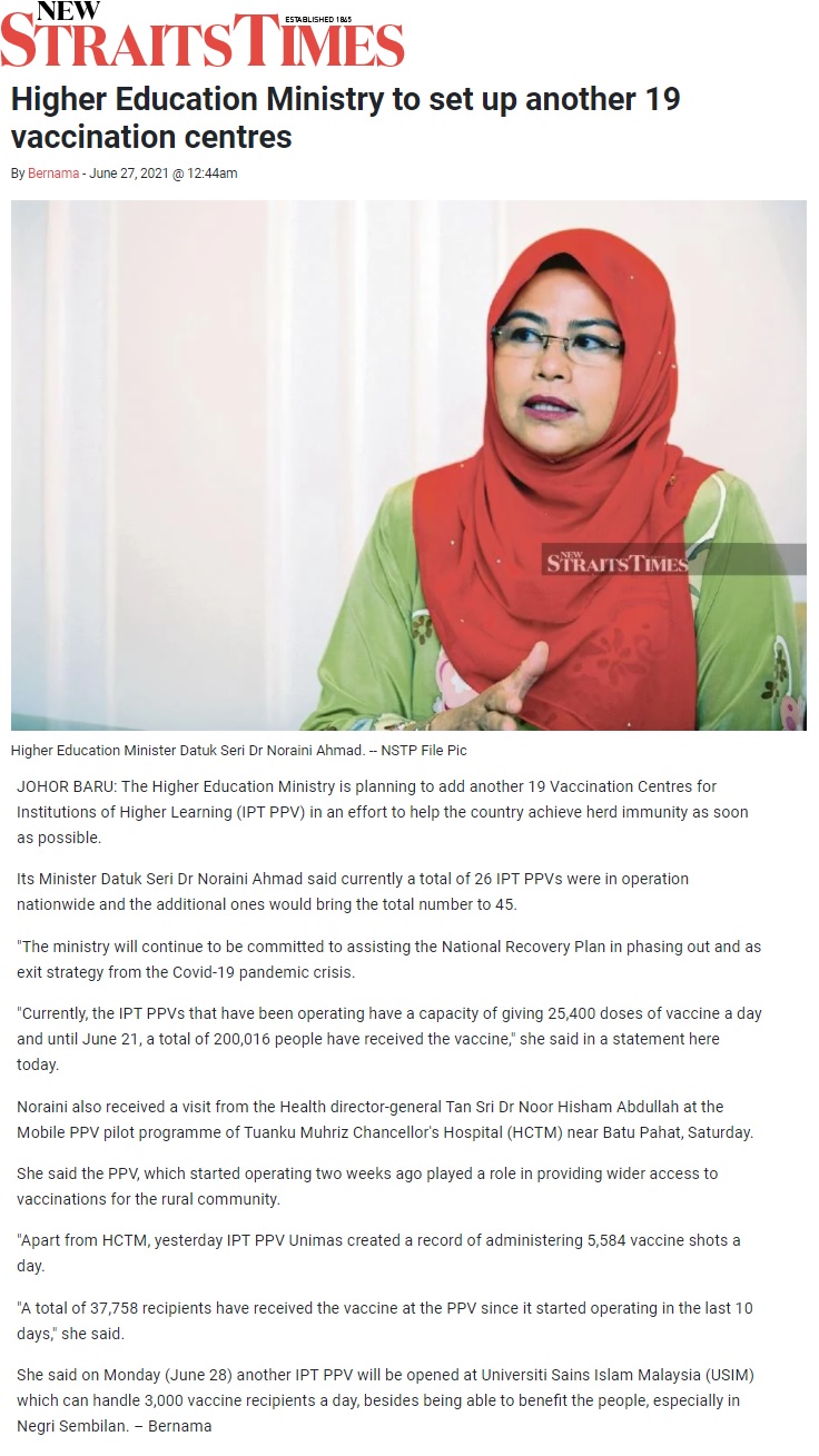 Higher Education Ministry To Set Up Another 19 Covid Vaccination