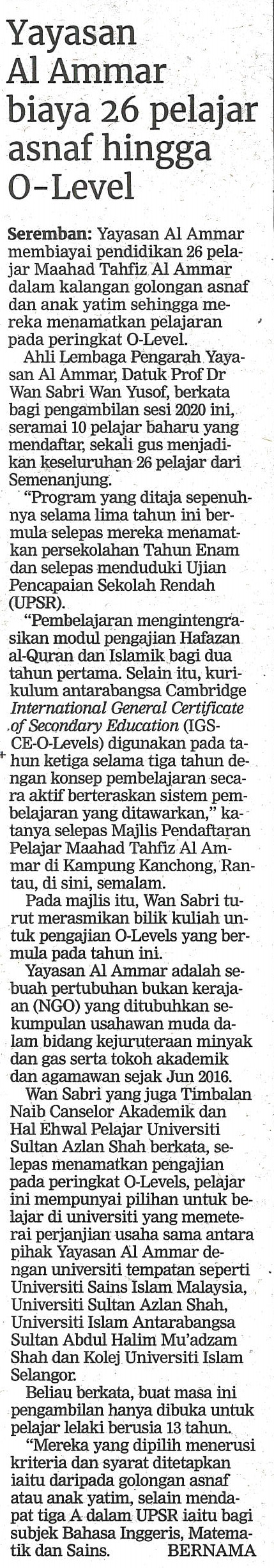 Yayasan Al-Ammar Biaya 26 Pelajar Asnaf Hingga O-Level
