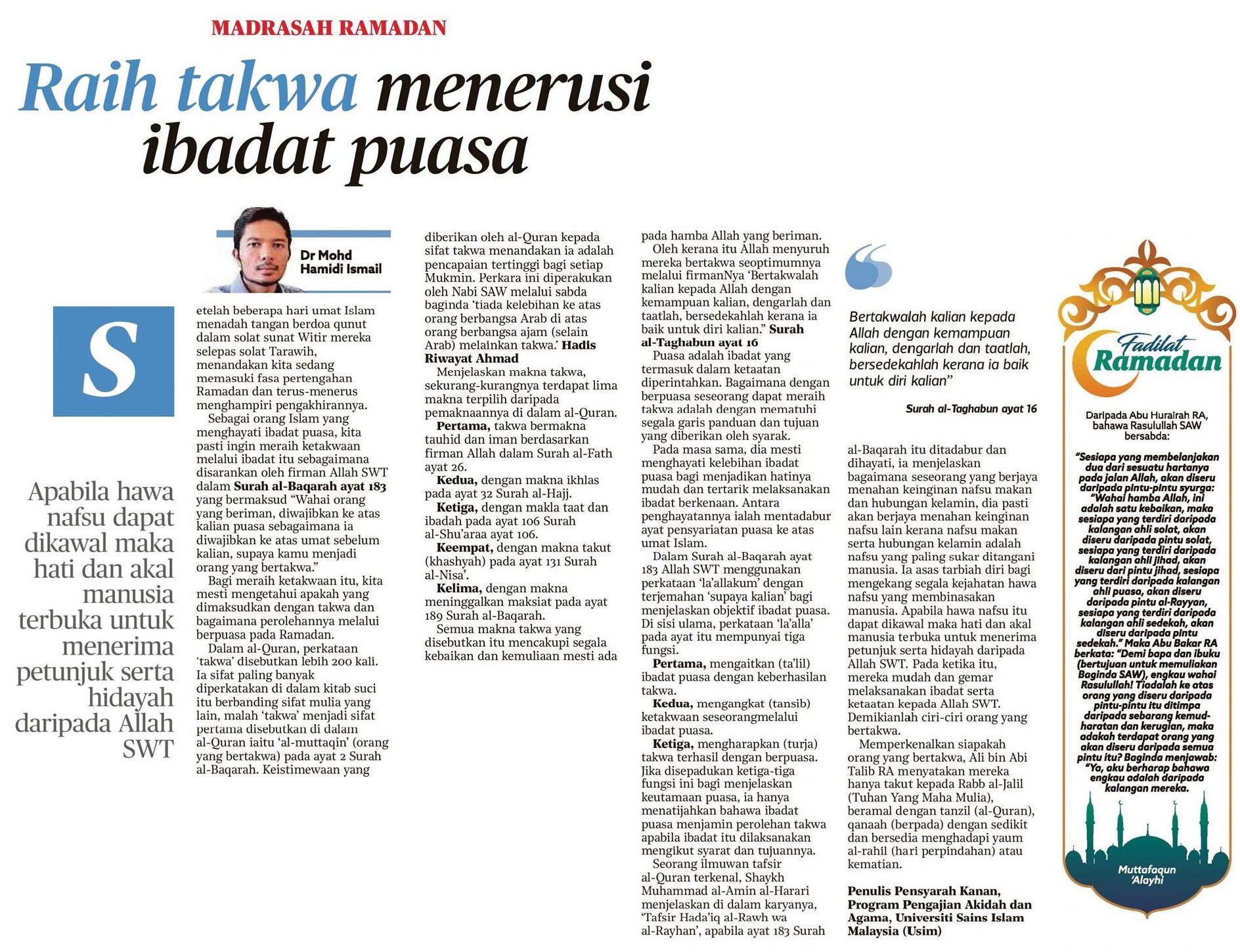 Raih Takwa Menerusi Ibadat Puasa