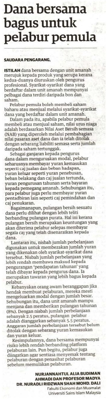 Dana bersama bagus untuk pelabur pemula