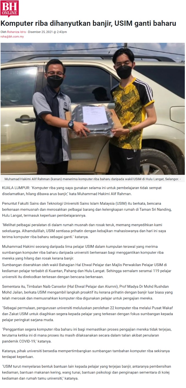 Komputer Riba Dihanyutkan Banjir, Usim Ganti Baharu