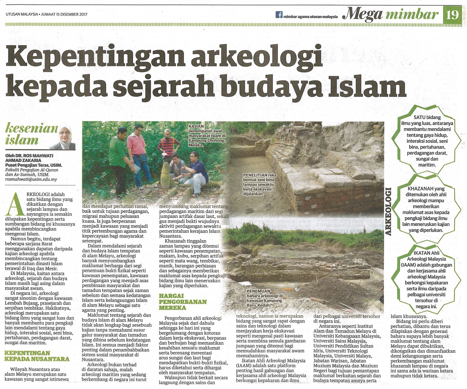 UTUSAN MALAYSIA - KEPENTINGAN ARKEOLOGI KEPADA SEJARAH BUDAYA ISLAM, 15 DISEMBER 2017, MS 19.jpg