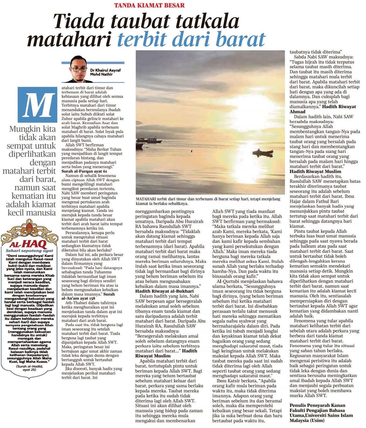 Tiada Taubat Tatkala Matahari Terbit Dari Barat