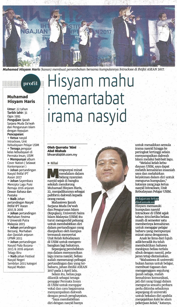 BERITA HARIAN - HISYAM MAHU MEMARTABAT IRAMA NASYID, 22 JUN 2017, MS V13 (VARSITI).jpg