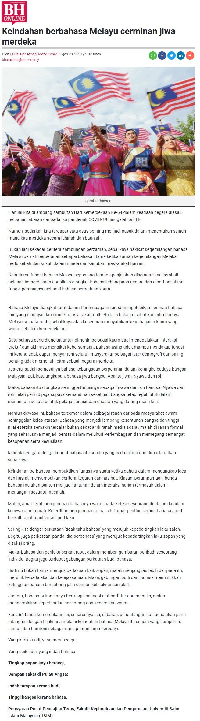 Keindahan Berbahasa Melayu Cerminan Jiwa Merdeka