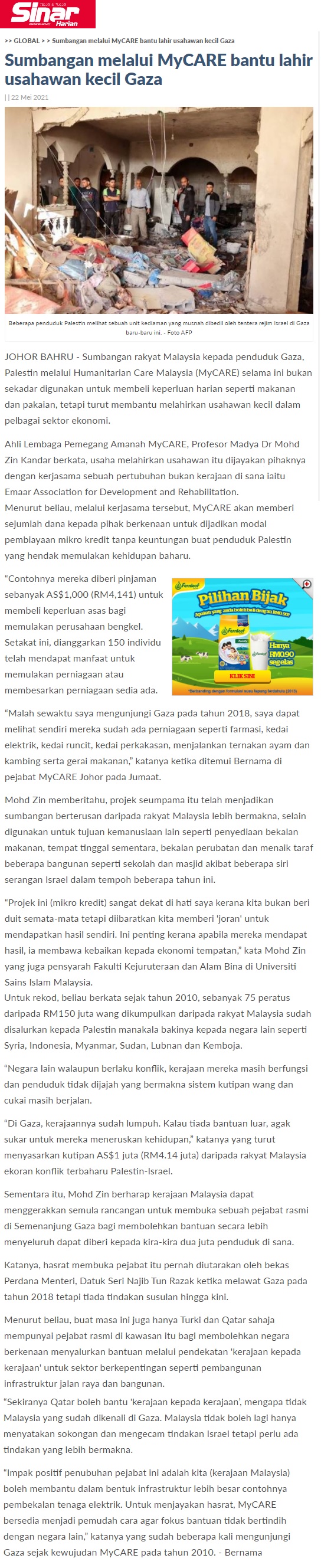 Sumbangan Rakyat Malaysia Melalui MyCare Bantu Lahir Usahawan Kecil Gaza
