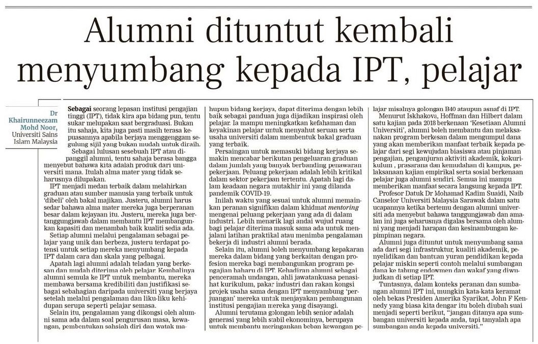 Alumni Dituntut Kembali Menyumbang Kepada Ipt, Pelajar
