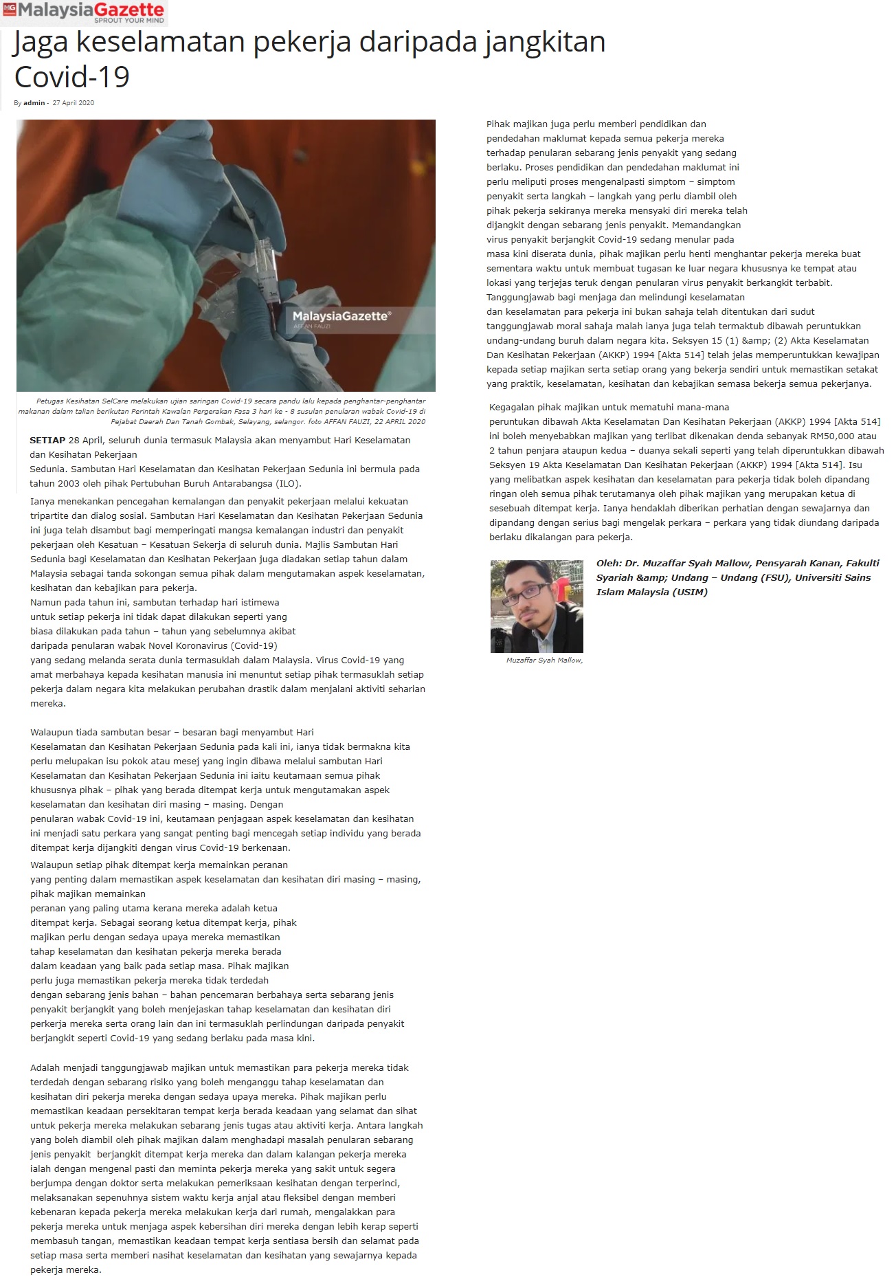 Jaga Keselamatan Pekerja Daripada Jangkitan Covid-19