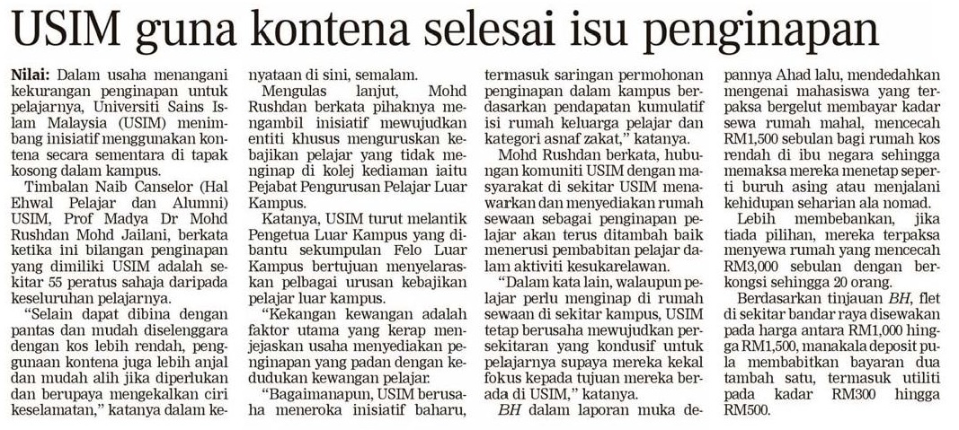 USIM Guna Kontena Selesai Isu Penginapan