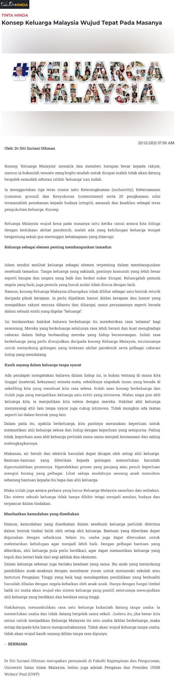 Konsep Keluarga Malaysia Wujud Tepat Pada Masanya
