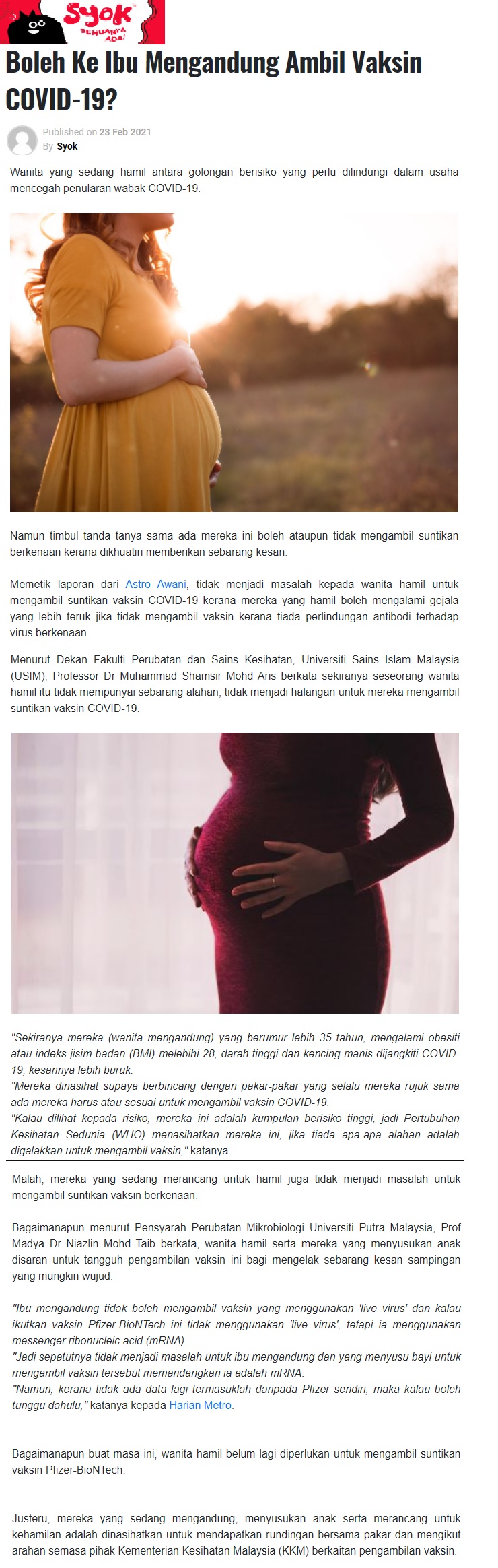 Boleh Ke Ibu Mengandung Ambil Vaksin ?