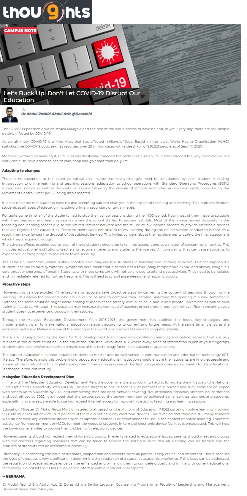 Let’s Buck Up! Don’t Let Covid-19 Disrupt Our Education