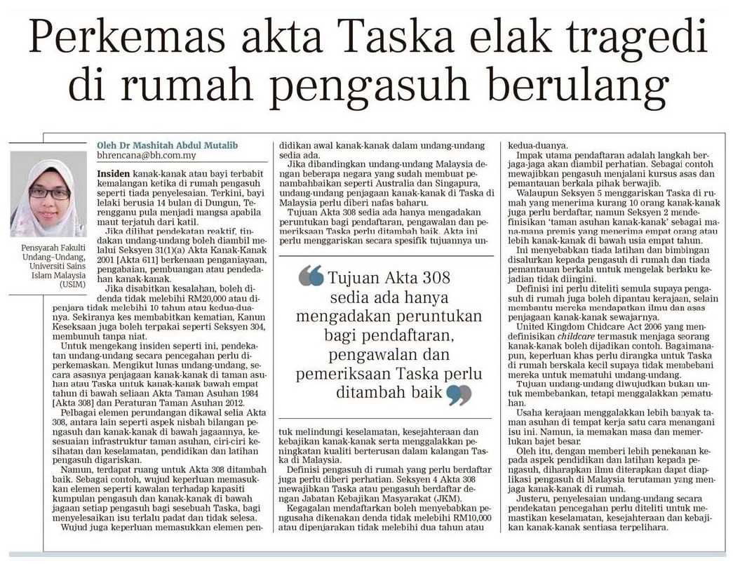 Perkemas Akta Taska Elak Tragedi Di Rumah Pengasuh Berulang