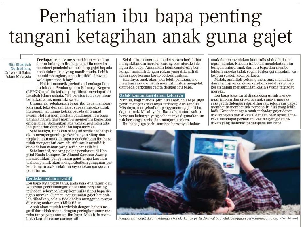 Perhatian Ibu Bapa Penting Tangani Ketagihan Anak Guna Gajet