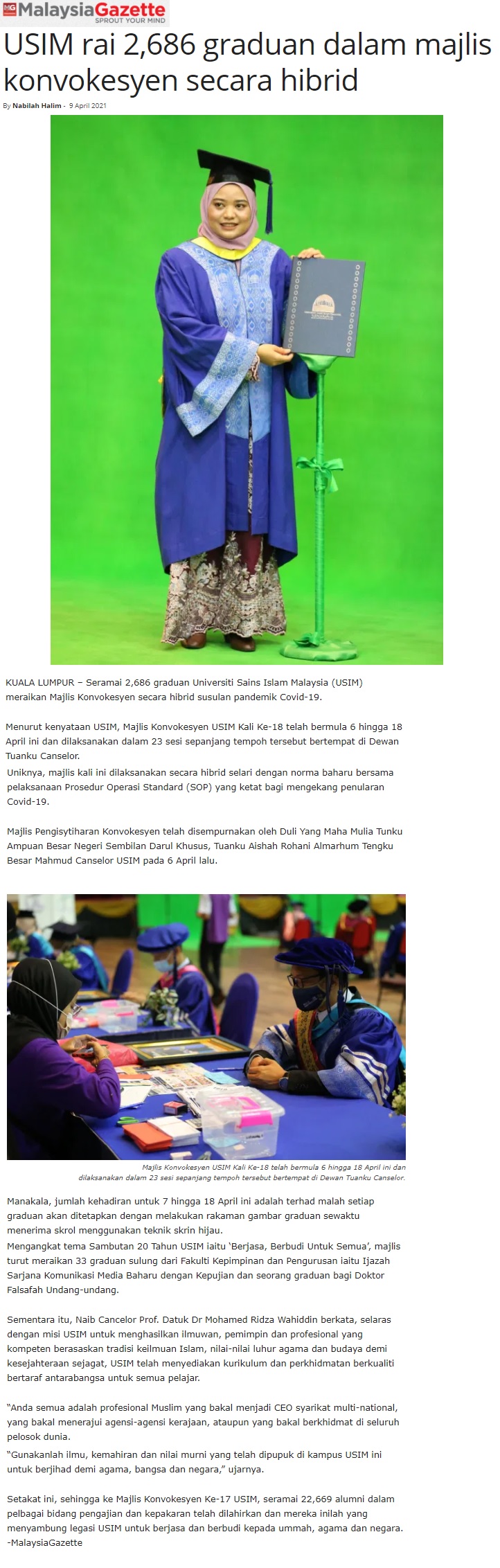 USIM Rai 2,686 Graduan Dalam Majlis Konvokesyen Secara Hybrid
