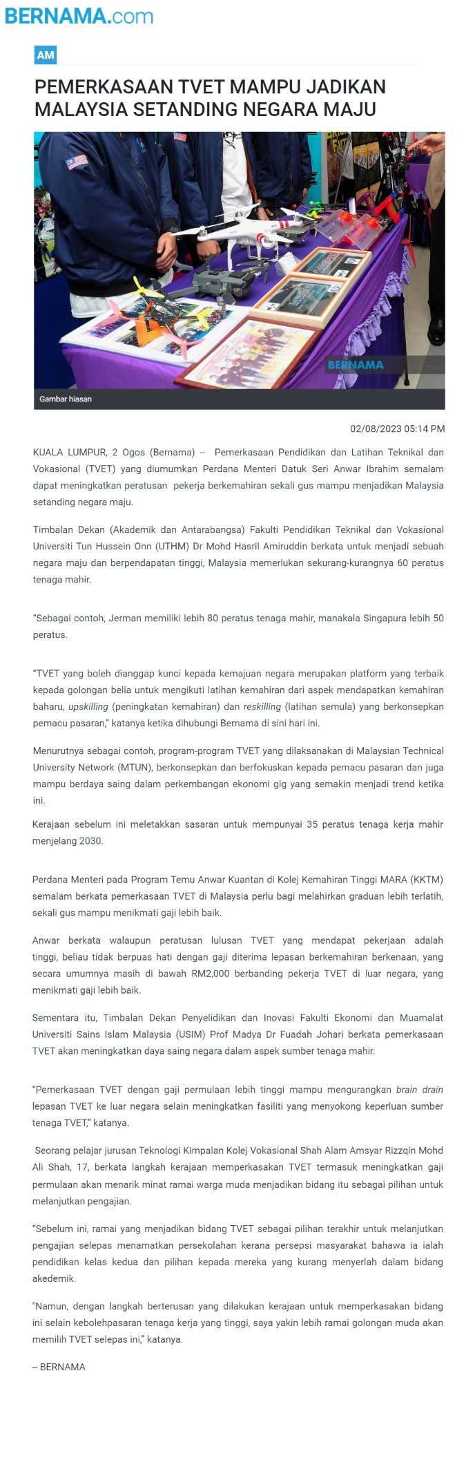 Pemerkasaan TVET mampu jadikan Malaysia setanding negara maju