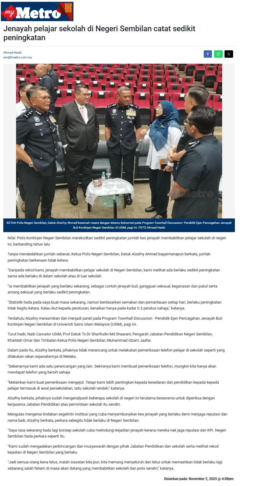 JENAYAH PELAJAR SEKOLAH DI NEGERI SEMBILAN CATAT SEDIKIT PENINGKATAN
