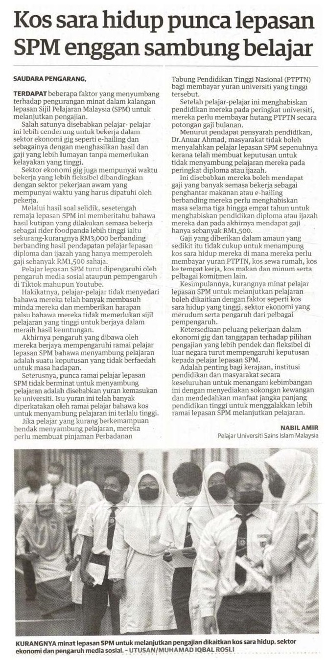 Kos sara hidup punca lepasan SPM enggan sambung belajar