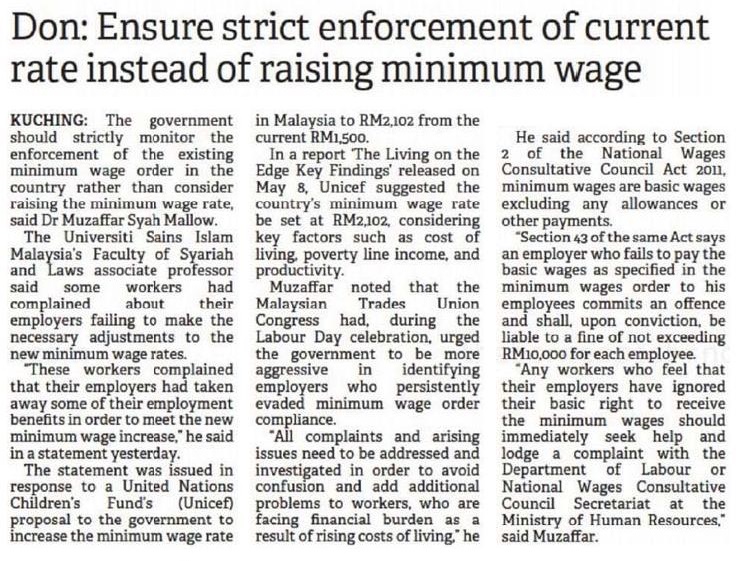 Don: Ensure strict enforcement of current rate instead of raising minimum wage