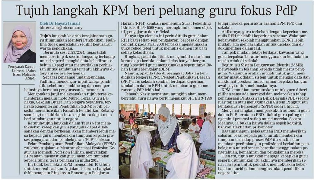 Tujuh langkah KPM beri peluang guru fokus PDP