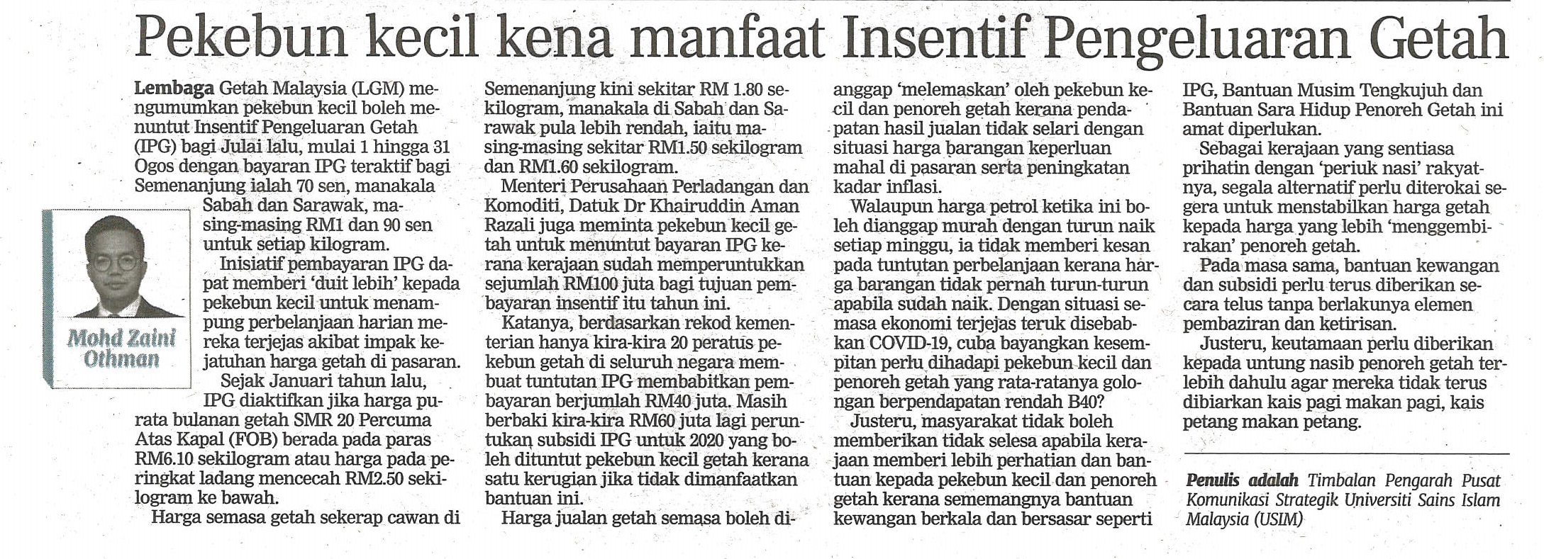 Pekebun Kecil Kena Manfaat Insentif Pengeluaran Getah