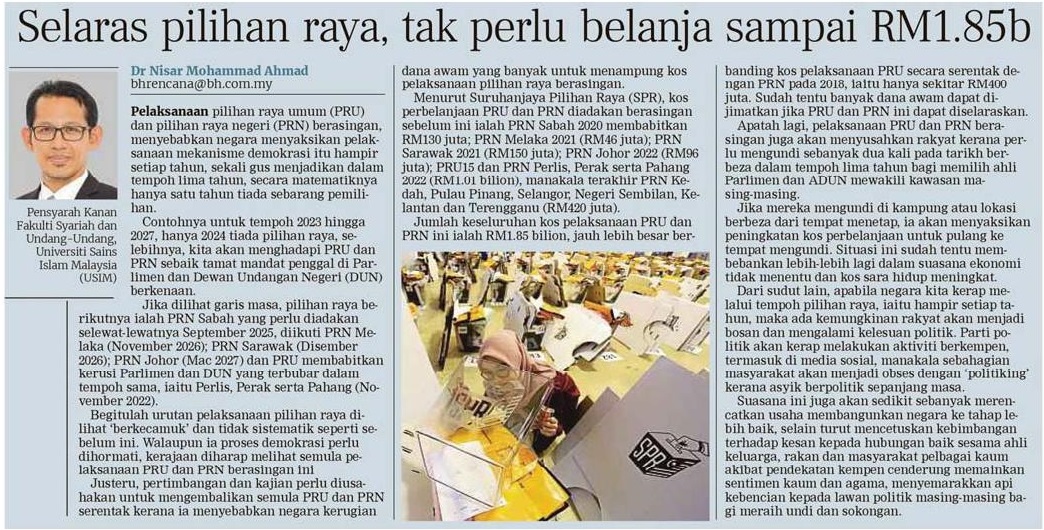 Selepas pilihan raya, tak perlu belanja sampai RM1.85b