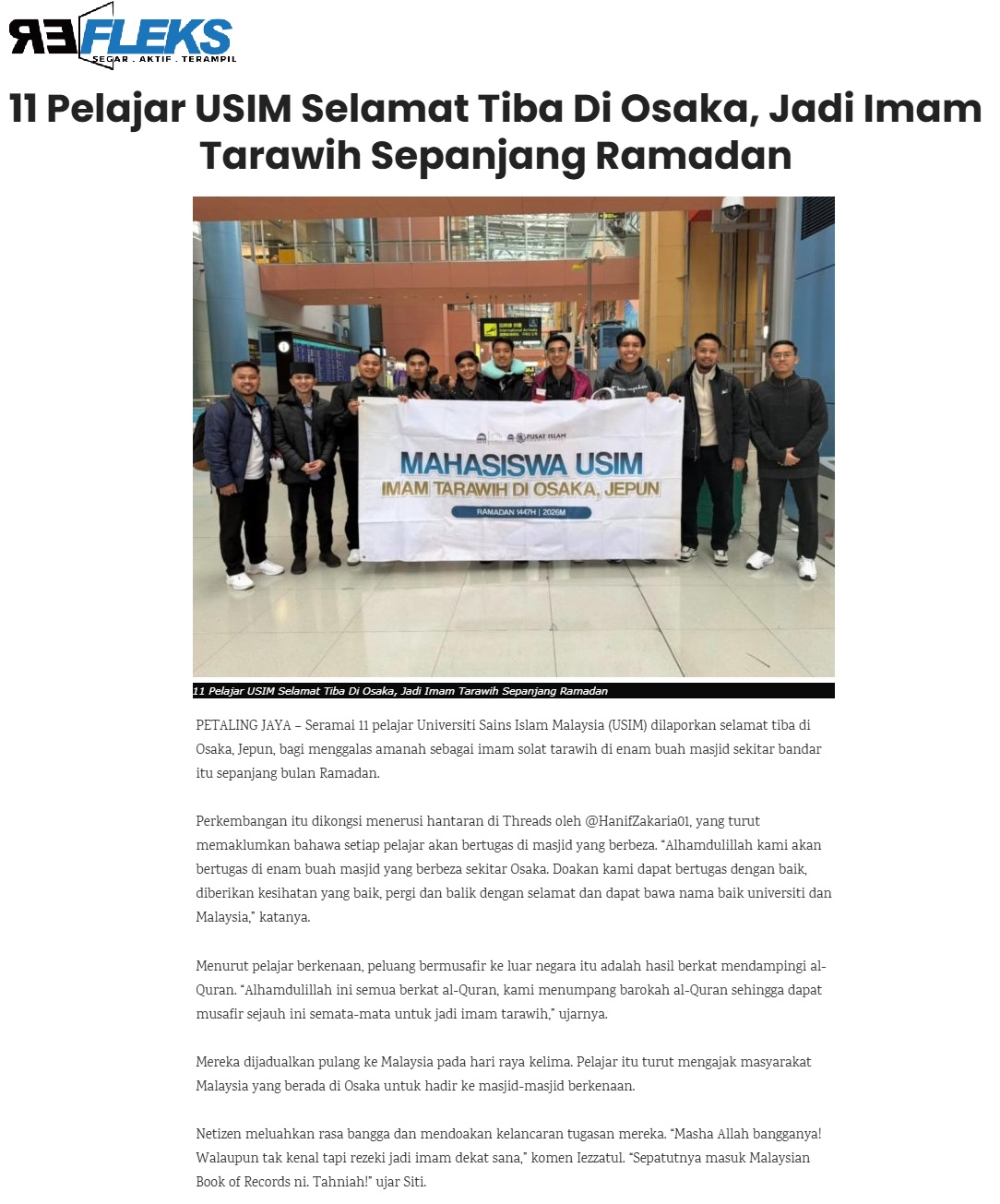 11 PELAJAR USIM SELAMAT TIBA DI OSAKA, JADI IMAM TARAWIH SEPANJANG RAMADAN