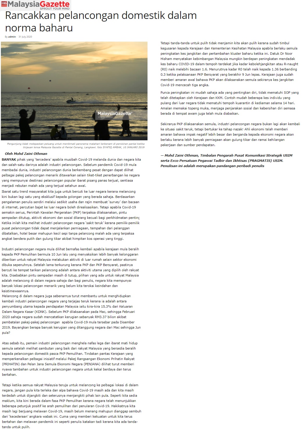Rancakkan Pelancongan Domestik Dalam Norma Baharu