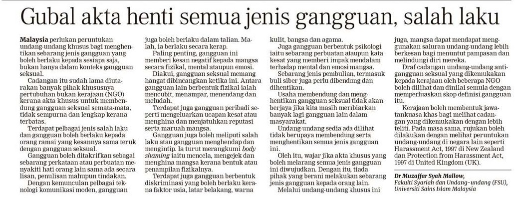 Gubal Akta Henti Semua Jenis Gangguan, Salah Laku