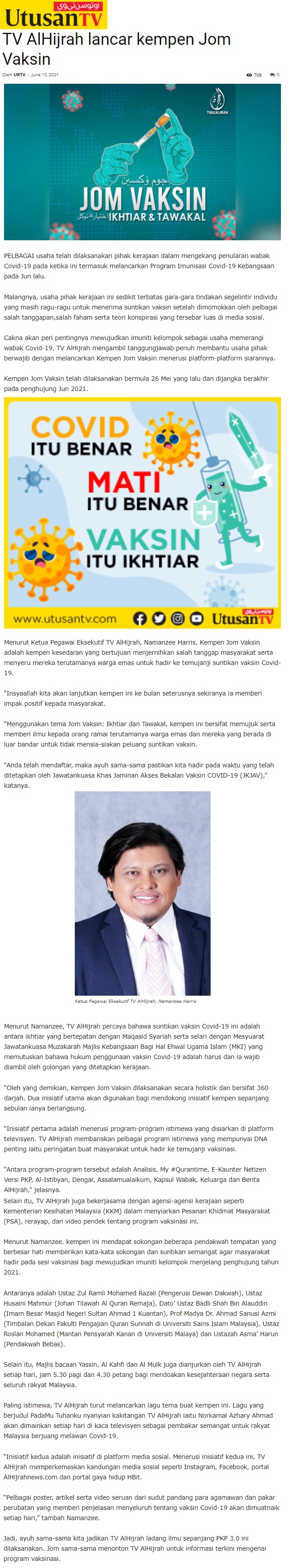 Tv Alhijrah Lancar Kempen Jom Vaksin