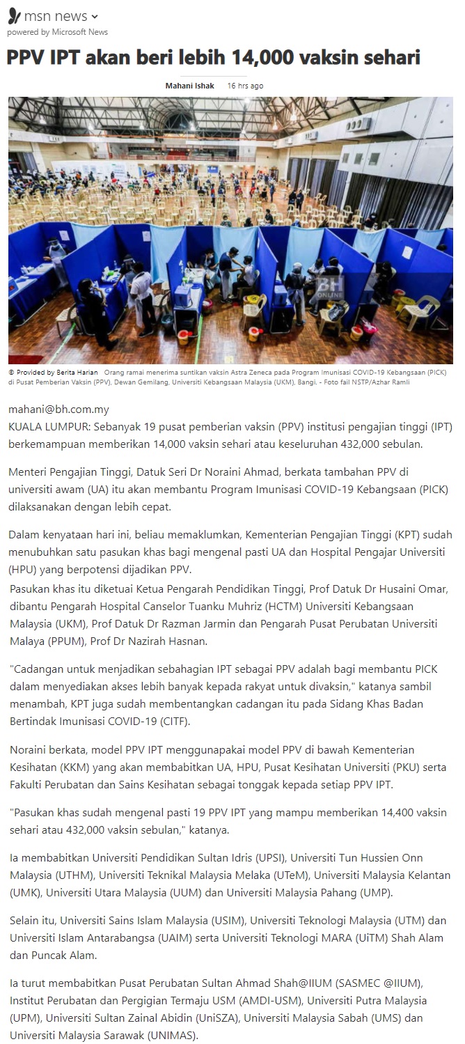 PPV IPT Mampu Beri 14,000 Vaksin Sehari