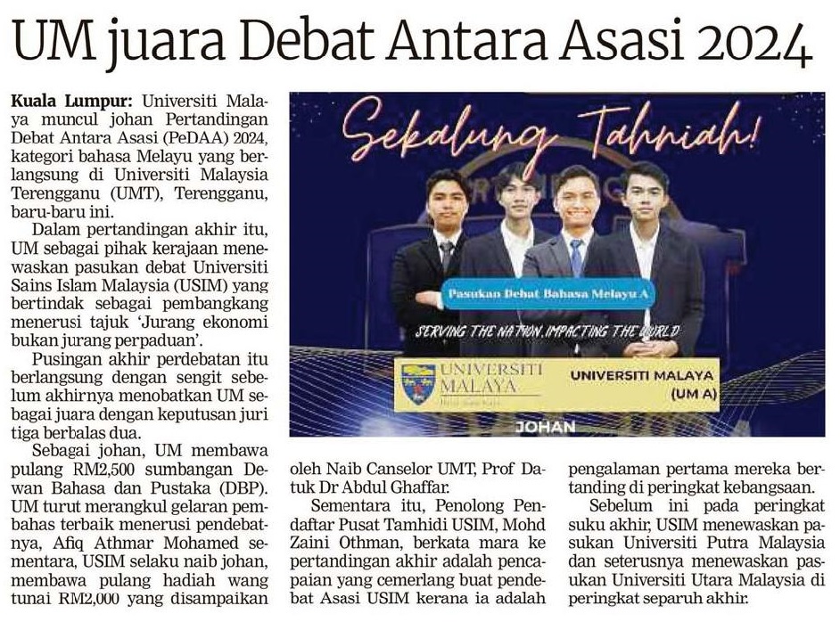 UM juara debat antara Asasi 2024