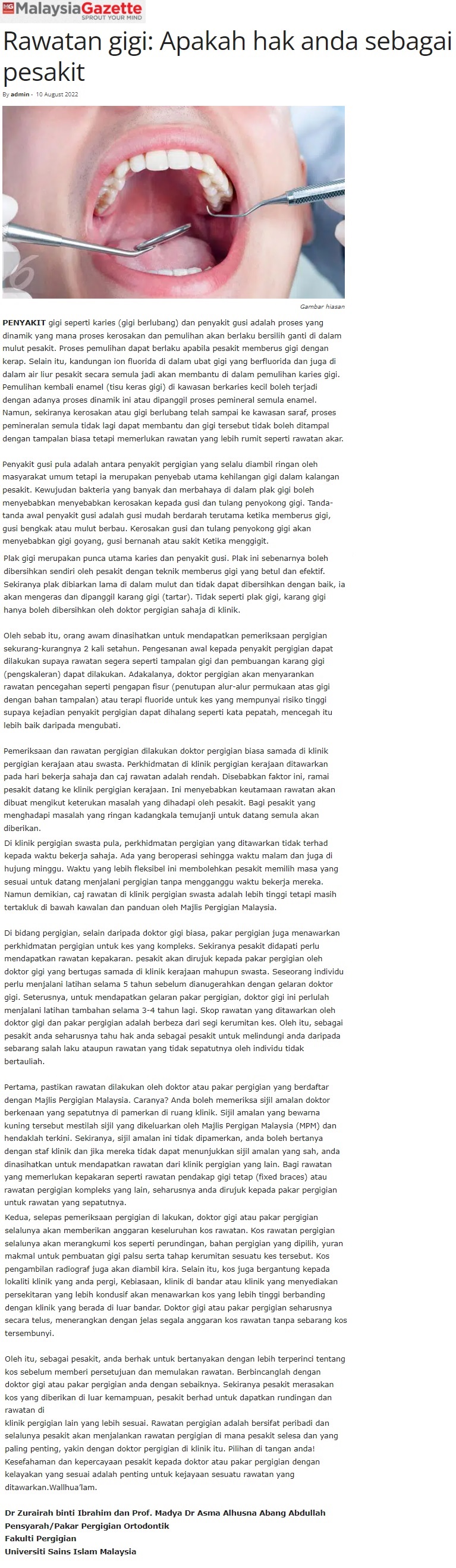 Rawatan Gigi ; Apakah Hak Anda Sebagai Pesakit