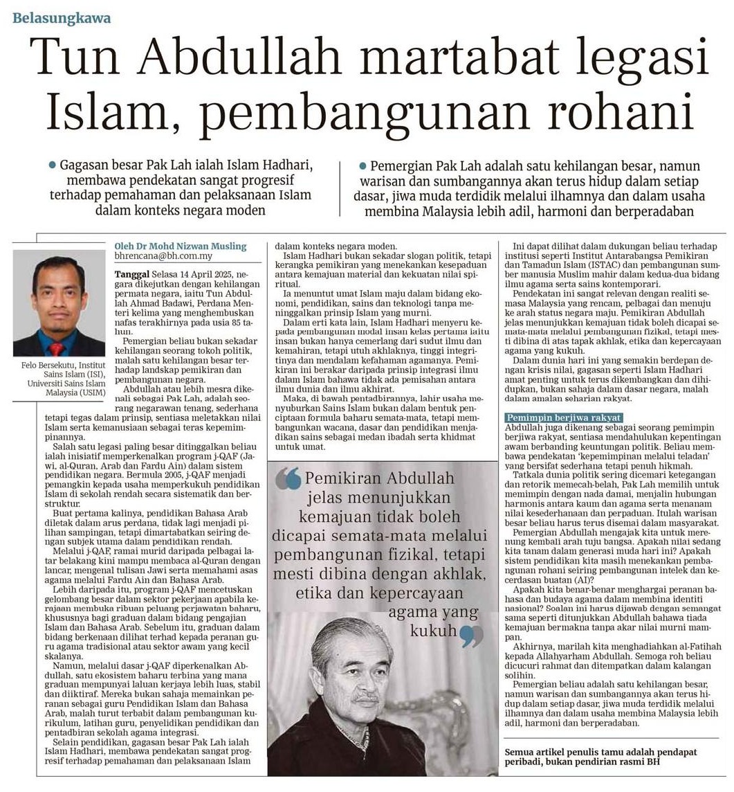 BERITA HARIAN 16 APRIL 2025 MS 10 TUN ABDULLAH MARTABAT LEGASI ISLAM, PEMBANGUNAN ROHANI.jpg