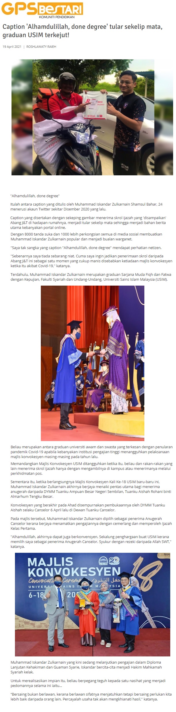 Caption 'Alhamdulillah, Done Degree' Tular Sekelip Mata, Graduan USIM Terkejut