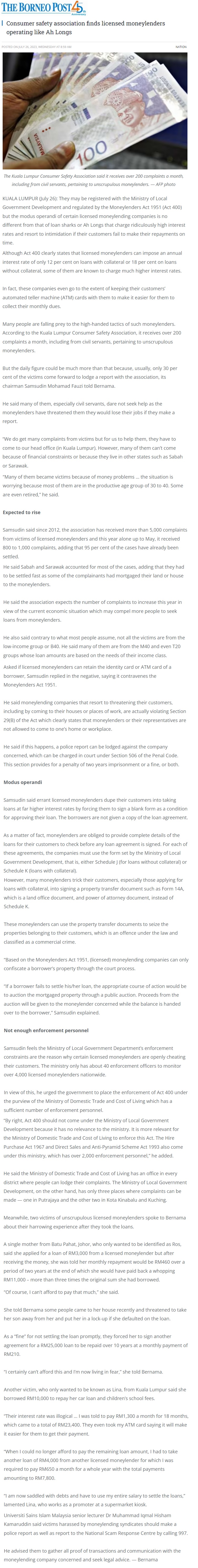 Consumer safety association finds licensed moneylenders operating like Ah Longs