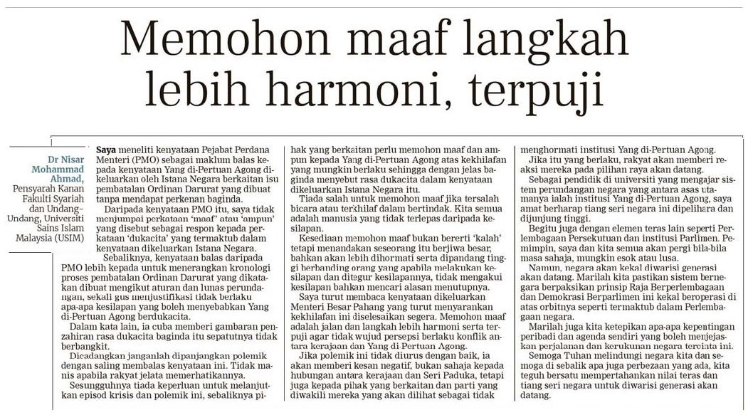 Memohon Maaf Langkah Lebih Harmoni, Terpuji